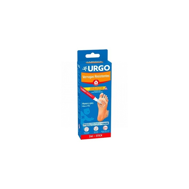 URGO VERRUGAS RESISTENTES ES UN MÉTODO EFICAZ, PRECISO Y PRÁCTICO PARA ELIMINAR DESDE CASA LAS VERRUGAS MÁS DIFÍCILES DE ELIMINAR.EFICAZ: STICK A BASE DE UN POTENTE ÁCIDO (TCA- ACTIVETM ) QUE OFRECE RESULTADOS VISIBLES DESDE LA PRIMERA SEMANA.PRECISO: PERMITE UNA APLICACIÓN PRECISA GRACIAS A SU PUNTA DE PRECISIÓN Y SU APLICADOR TRANSPARENTE.PRÁCTICO: APLICACIÓN LOCALIZADA Y CONTROLADA EN EL ÁREA A TRATAR GRACIAS A SU FÓRMULA DE GEL AZULADO.MODO DE EMPLEO:ANTES DE SU USO, LEA ATENTAMENTE EL MODO DE EMPLEO. EL STICK DE URGO VERRUGAS RESISTENTES CONTIENE UN GEL ALTAMENTE EFICAZ PERO CORROSIVO. PARA USO EXTERNO ÚNICAMENTE EN MANOS Y PIES. SI NO ESTÁ SEGURO DE QUE SU AFECCIÓN CUTÁNEA SEA UNA VERRUGA, CONSULTE A UN MÉDICO ANTES DE USAR ESTE PRODUCTO.AVISO IMPORTANTE: PROTEGER LA PIEL SANA CIRCUNDANTE ANTES DEL TRATAMIENTO MEDIANTE LA APLICACIÓN DE UNA FINA CAPA DE VASELINA ALREDEDOR DE LA VERRUGA. ASEGÚRESE DE QUE LA VASELINA NO CUBRE LA VERRUGA, YA QUE ESTO PODRÍA MINIMIZAR EL EFECTO DEL TRATAMIENTO.PARA RETIRAR EL TAPÓN, ALINEE LAS DOS FLECHAS Y TIRE.EN EL PRIMER USO DEL PRODUCTO, PRESIONE EL BOTÓN DEL STICK VARIAS VECES CON UN INTERVALO DE 5 SEGUNDOS ENTRE CADA PULSACIÓN HASTA HACER SALIR EL PRODUCTO. UNA GOTA DE GEL (1 CLICK) ES SUFICIENTE PARA UNA APLICACIÓN. SI UNA SOLA GOTA NO CUBRE LA VERRUGA POR COMPLETO, APLIQUE OTRA GOTA DE GEL EN LA VERRUGA, SIN TOCAR LA PIEL SANA ALREDEDOR.MANTENER EL STICK VERTICALMENTE CON EL APLICADOR HACIA ABAJO PARA QUE EL GEL LLEGUE A LA PUNTA DEL APLICADOR.APLICAR CUIDADOSAMENTE 1 SOLA GOTA DE GEL EN LA VERRUGA. GRACIAS COLOR AZUL DEL GEL, PODRÁ IDENTIFICAR CON FACILIDAD DONDE LO HA APLICADO.SI EL GEL ENTRA EN CONTACTO ACCIDENTALMENTE CON UNA PIEL SANA, LAVAR INMEDIATAMENTE CON ABUNDANTE AGUA Y JABÓN PARA EVITAR IRRITACIONES O QUEMADURAS EN LA PIEL. PARA PROTEGER LA PIEL SANA, ES RECOMENDABLE APLICAR UNA FINA CAPA DE VASELINA ALREDEDOR DE LA VERRUGA ANTES DE LA APLICACIÓN. ASEGURAR QUE LA VASELINA NO SE APLICA SOBRE LA VERRUGA, YA QUE ESTO PODRÍA MINIMIZAR EL EFECTO DEL TRATAMIENTO.TRAS LA APLICACIÓN, DEJAR SECAR EL GEL DURANTE 10-15 MINUTOS ANTES DE VESTIRSE O PONERSE LOS ZAPATOS.REPETIR 2 VECES AL DÍA DURANTE 4 DÍAS. EN NIÑOS CON VERRUGAS DE TAMAÑO REDUCIDO, APLICAR 1 VEZ AL DÍA DURANTE 4 DÍAS.LIMPIAR EL APLICADOR CON UNA SERVILLETA DE PAPEL PARA RETIRAR LOS RESTOS DE GEL. VOLVER A COLOCAR EL TAPÓN AL STICK Y ASEGURARSE DE QUE LAS FLECHAS ROJAS NO ESTÁN ALINEADAS.DURANTE EL TRATAMIENTO, LA VERRUGA SE VOLVERÁ MÁS OSCURA Y LA PIEL FORMARÁ UNA COSTRA. DEPENDIENDO DEL TAMAÑO DE LA VERRUGA, ESTA DEBERÁ DESAPARECER 1 O 2 SEMANAS DESPUÉS DEL TRATAMIENTO, DANDO PASO A UNA PIEL MÁS LISA Y LIGERAMENTE ROSADA, QUE RECOBRARÁ SU COLOR NATURAL EN LAS SIGUIENTES SEMANAS.NO EXPONER LA ZONA TRATADA AL SOL HASTA QUE LA PIEL NO HAYA RECUPERADO SU TONO NATURAL.SI LA VERRUGA NO DESAPARECE POR COMPLETO, SE PUEDE VOLVER A REPETIR EL TRATAMIENTO TRAS UNA PAUSA DE 4 DÍAS. EL TRATAMIENTO SE PUEDE REALIZAR HASTA UN MÁXIMO DE 4 VECES. SI LA VERRUGA NO DESAPARECE TRAS EL 4° TRATAMIENTO, CONSULTE A SU MÉDICO.PRECAUCIONES DE USO:URGO VERRUGAS RESISTENTES STICK CONTIENE UN ÁCIDO CORROSIVO. ES IMPORTANTE APLICARESTE PRODUCTO SOLO SOBRE LAS VERRUGAS LOCALIZADAS EN MANOS Y PIES.SI EL GEL ENTRA EN CONTACTO CON LA PIEL SANA, LAVAR INMEDIATAMENTE CON AGUA Y JABÓN.USO EXTERNO ÚNICAMENTE.SI ES LA PRIMERA VEZ QUE USA EL PRODUCTO, APLIQUE EL GEL SOBRE UNA ÚNICA VERRUGA ANTESDE TRATAR EL RESTO DE VERRUGAS.NO EXPONER LA ZONA TRATADA AL SOL HASTA QUE ESTÉ TOTALMENTE SANA. EL PROCESO DEREGENERACIÓN DE LA PIEL PUEDE DURAR DE 4 A 6 SEMANAS. LA EXPOSICIÓN PROLONGADA AL SOLPODRÍA CAUSAR HIPO O HIPERPIGMENTACIÓN EN LA PIEL.NO TOCAR LA PIEL TRATADA, YA QUE LAS VERRUGAS SON CONTAGIOSAS.NO RASCAR NI ARRANCAR LA VERRUGA TRATADA, DEJAR QUE SE CAIGA POR SÍ SOLA.EVITAR EL CONTACTO CON LOS OJOS Y LA BOCA. AL TRATAR UNA VERRUGA EN LAS MANOS, LAVARLAS 5 MINUTOS DESPUÉS DEL TRATAMIENTO PARA EVITAR CUALQUIER RIESGO DE CONTACTO CON LOS OJOS Y MUCOSAS. EN CASO DE CONTACTO ACCIDENTAL CON LOS OJOS O LA MUCOSA, ENJUAGUE ABUNDANTEMENTE CON AGUA Y CONSULTE A SU MÉDICO..POR MOTIVOS DE HIGIENE, EL PRODUCTO DEBE SER DE USO PERSONAL. NO REUTILIZAR POR OTROSUSUARIOS. AL FINAL DEL TRATAMIENTO, TIRE EL STICK.EVITAR EL CONTACTO CON JOYAS, ROPA, TEJIDOS O MUEBLES, YA QUE EL PRODUCTO PODRÍADAÑARLOS.DESPUÉS DE CADA USO, PUEDEN QUEDAR RESTOS DE GEL EN LA BOQUILLA DEL STICK, POR LO QUESE RECOMIENDA MANIPULAR LA BOQUILLA CON CUIDADO AL ABRIR Y CERRAR EL PRODUCTO.PROTEGER LA ZONA TRATADA CON FIN DE EVITAR INFECCIONES.CONSULTE CON SU MÉDICO ANTE CUALQUIERA DE LAS SIGUIENTES SITUACIONES:– SI LA VERRUGA NO DESAPARECE TRAS 4 TRATAMIENTOS (4 SEMANAS)– SI APARECE IRRITACIÓN, ENROJECIMIENTO O DOLOR.– SI LA VERRUGA O LA ZONA ALREDEDOR ESTÁ ENROJECIDA O DOLORIDA. TAMBIÉN EN CASODE QUE LA VERRUGA ESTÉ DAÑADA O SANGRE.CONTRAINDICACIONES:NO USE EL PRODUCTO EN LOS SIGUIENTES CASOS:EN OTRAS PARTES DEL CUERPO QUE NO SEAN LAS MANOS O LOS PIES.SOBRE LA PIEL LESIONADA IRRITADA, INFLAMADA O QUE PRESENTA SIGNOS DE INFLAMACIÓN (PICOR O HINCHAZÓN).SOBRE LUNARES, HIPERPIGMENTACIONES, MANCHAS OSCURAS, ROJECES, PIEL DAÑADA POR CAUSA DEL VIRUS MOLLUSCUM CONTAGIOSUM, VERRUGAS SEBORREICAS O VERRUGAS PLANAS.SI NO ESTÁ SEGURO DE SI SU AFECCIÓN ES UNA VERRUGA COMÚN O PLANTAR.SI ES ALÉRGICO A ALGUNO DE SUS COMPONENTES.EN NIÑOS MENORES DE 4 AÑOS.EN COMBINACIÓN CON OTROS PRODUCTOS DE TRATAMIENTO DE VERRUGAS. ES ACONSEJABLE ESPERAR HASTA QUE LA VERRUGA HAYA RECUPERADO SU ASPECTO ORIGINAL (SIN IRRITACIÓN, ENROJECIMIENTO) ANTES DE COMENZAR EL TRATAMIENTO.ANTES DE SU USO, ES ACONSEJABLE CONSULTAR A UN MÉDICO EN LOS SIGUIENTES CASOS:EMBARAZO O LACTANCIA.TRASTORNOS CIRCULATORIOS, ENFERMEDADES DE LA PIEL, DIABETES.