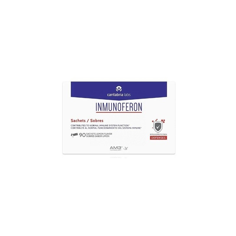 INMUNOFERON ES UN COMPLEMENTO ALIMENTICIO CON UNA FÓRMULA EXCLUSIVA A BASE DE AM3® (ALFA GLUCOMANANO FOSFORILADO Y PROTEÍNA DE SOJA), TECNOLOGÍA PATENTADA POR CANTABRIA LABS, Y ZINC, INGREDIENTE QUE CONTRIBUYE AL NORMAL FUNCIONAMIENTO DEL SISTEMA INMUNE.CADA LOTE DE INMUNOFERON CÁPSULAS ES VERIFICADO POR MEDIO DEL PROGRAMA INFORMED SPORT EN RELACIÓN A SUSTANCIAS PROHIBIDAS PARA DEPORTISTAS. LOS PRODUCTOS SE SOMETEN A UNOS RIGUROSOS TEST MEDIANTE MÉTODOS ACREDITADOS POR LA ISO 17025 PARA PROPORCIONAR EL MÁXIMO NIVEL DE SEGURIDAD PARA LOS DEPORTISTAS. PARA MÁS INFORMACIÓN ACERCA DE LOS PROCESOS DE TESTEO, POR FAVOR VISITE INFORMED-SPORT. COM.MODO DE EMPLEOADULTOS: 2 CÁPSULAS O 2 SOBRES UNA VEZ AL DÍANIÑOS: 1 CÁPSULA O 1 SOBRE UNA VEZ AL DÍACOMPOSICIÓNPOR CÁPSULA O SOBRE:30 MG AM3®3 MG ZINC