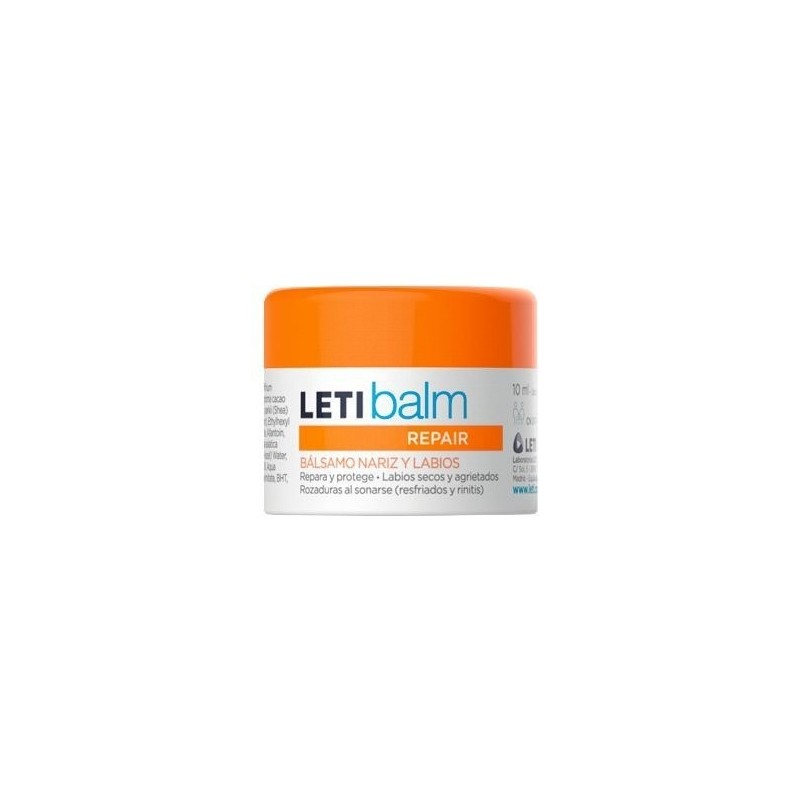 LETI BALM PEDIÁTRICO ES EL PRIMER BÁLSAMO QUE SIRVE PARA REPARAR NARIZ Y LABIOS DE LOS NIÑOS. TIENE UNA ACCIÓN REPARADORA INTENSA, EMOLIENTE, HIDRATANTE Y PROTECTORA.LETI BALM PEDIÁTRICA TARRO 10 ML ESTÁ INDICADO PARA:- EL CUIDADO DE ZONAS IRRITADAS DE NARIZ Y LABIOS POR PROCESOS CATARRALES O GRIPE.- ROZADURAS PROVOCADAS POR EL EXCESIVO USO DE PAÑUELOS.- ALTERACIONES PRODUCIDAS POR EL FRÍO Y EL VIENTO.- APARICIÓN DE LABIOS AGRIETADOS.