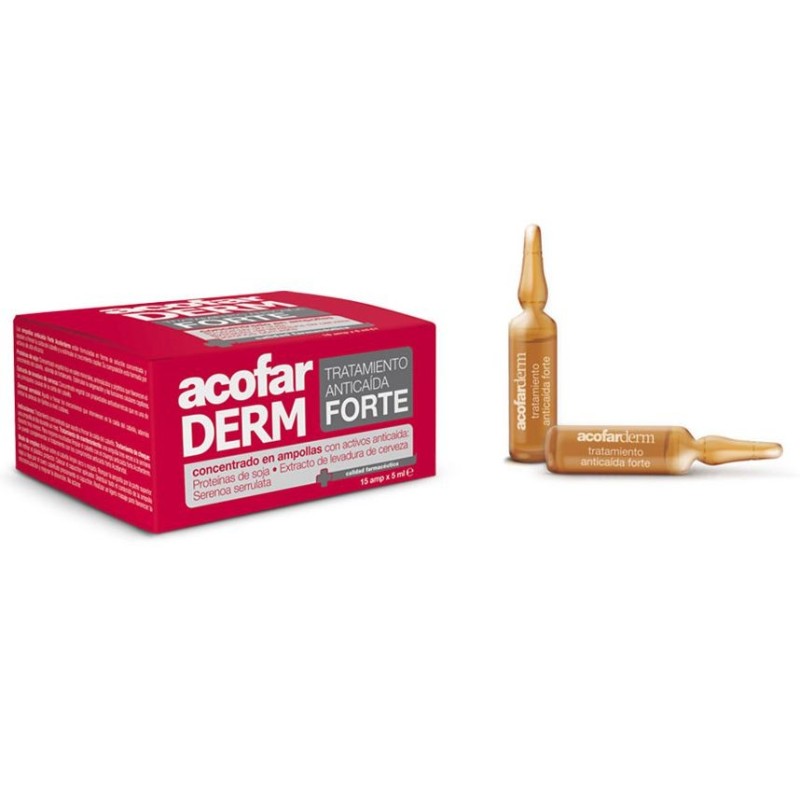Las ampollas anticaída Forte Acofarderm están formuladas en forma de solución concentrada y ayudan a frenar la caída del cabello y a estimular el crecimiento capilar.