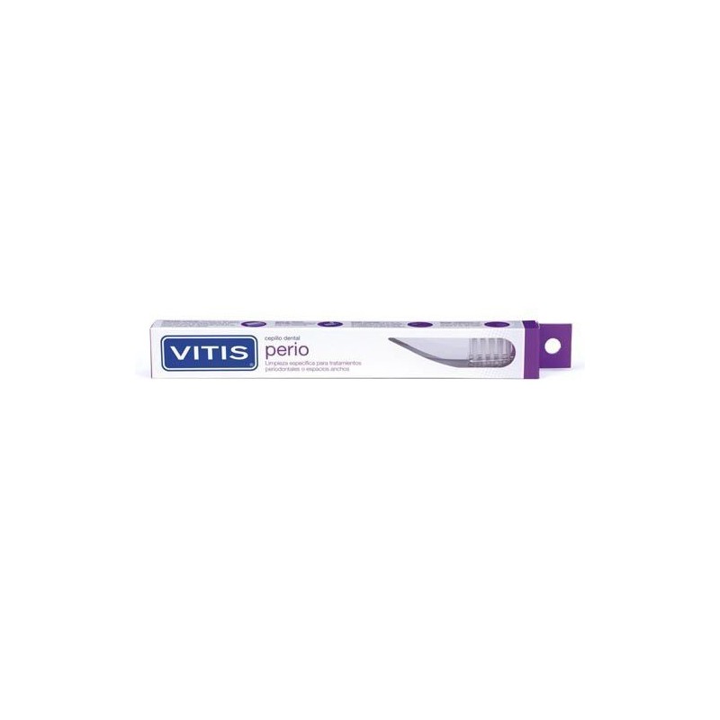 VITIS PERIO CEPILLO DENTAL ESTÁ ESPECIALEMENTE DISEÑADO PARA ELIMINAR EL BIOFILM ORAL (PLACA BACTERIANA) EN PERSONAS CON PROBLEMAS PERIODONTALES O ESPACIOS INTERDENTALES ANCHOS. ES UN CEPILLO DE USO DIARIO CON UN MAYOR ESPACIO ENTRE LOS PENACHOS (GRUPO DE FILAMENTOS) DEL CABEZAL, LO QUE PERMITE UN MEJOR ACCESO A LOS ESPACIOS INTERDENTALES ANCHOS, ADEMÁS LOS FILAMENTOS SON SUAVES Y CON PERFIL RECTO PARA RESPETAR LAS ENCÍAS CON ENFERMEDAD PERIODONTAL.