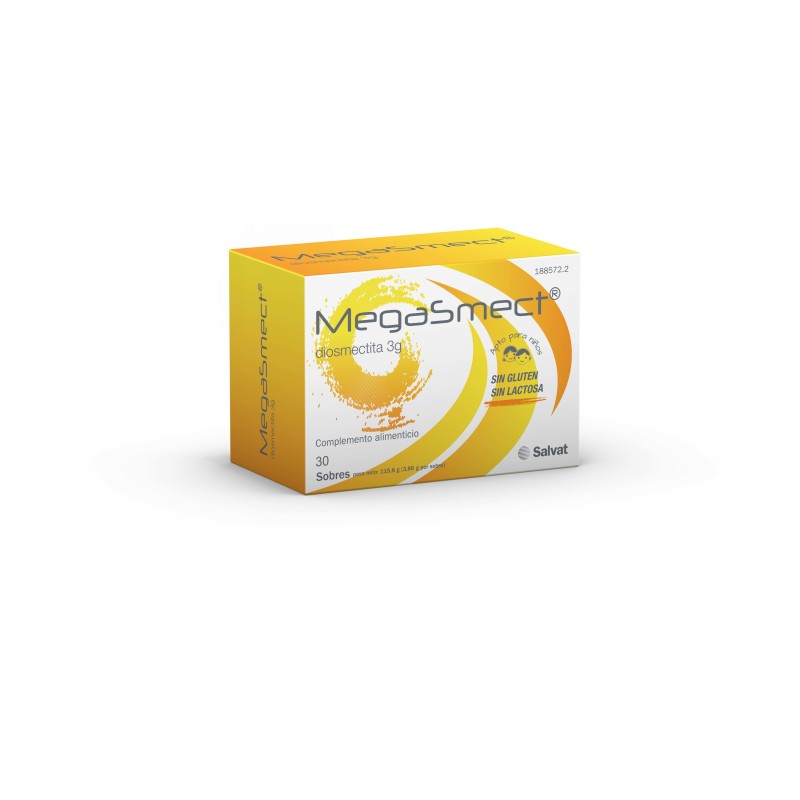 PRINCIPIOS ACTIVOSDIOSMECTITAMEGASMECT CONTIENE DIOSMECTITA, UN ANTIDIARREICO NATURAL QUE ES CAPAZ DE ADHERIRSE A LA BARRERA INTESTINAL Y DE ABSORBER LAS TOXINAS DE LAS BACTERIAS Y LOS VIRUS (ROTAVIRUS) QUE CAUSAN LA DIARREA. ADEMÁS, AYUDA A AUMENTAR LA ABSORCIÓN DE AGUA Y ELECTROLITOS Y A RESTAURAR EL EPITELIO INTESTINAL.MEGASMECT, GRACIAS A LA ACCIÓN DE LA DIOSMECTITA, PROTEGE LA MUCOSA DIGESTIVA Y AYUDA A REDUCIR LA DURACIÓN DE LA DIARREA.NIÑOS:2 AÑOS: 2-3 SOBRES AL DÍA (1 SOBRE CADA 8 Ó 12H).ADULTOS:1 SOBRE 3 VECES AL DÍADURACIÓN DEL TRATAMIENTO:3-5 DÍAS EN FUNCIÓN DE LA EVOLUCIÓN.PUEDE TOMARSE DURANTE PERIODOS LARGOS.LOS SOBRES SE DILUYEN EN 25-50 ML DE AGUA O LECHE. TAMBIÉN SE PUEDEN MEZCLAR CON SOPAS O PURÉS.INGREDIENTES:DIOSMECTITA 3G, GLUCOSA MONOHIDRATO 0,75 G,SACARINA SÓDICA, AROMA DE NARANJA, AROMA DE VAINILLA.