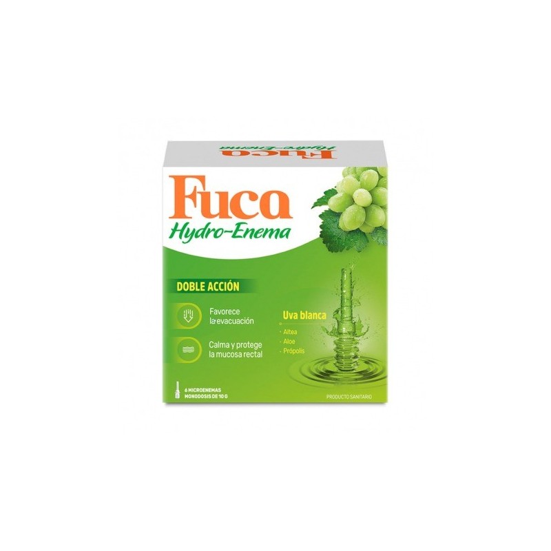 FUCA HYDRO-ENEMA ES UN LAXANTE A BASE DE EXTRACTOS VEGETALES Y COMPONENTES AZUCARADOS CON ACCIÓN PROTECTORA, LENITIVA Y CALMANTE DE LA MUCOSA RECTAL, EFICAZ PARA IMPEDIR LOS PROBLEMAS Y CONTRARRESTAR LAS MOLESTIAS POR LA IRRITACIÓN PRESENTES EN CASO DE ESTREÑIMIENTO. FUCA HYDRO-ENEMA HIDRATA LAS HECES CONTRIBUYENDO ASÍ A ABLANDAR LA MASA FECAL Y FAVORECIENDO SU EVACUACIÓN. FUCA HYDRO-ENEMA CONTIENE UN COMPLEJO RICO EN MONOSACÁRIDOS, POLISACÁRIDOS Y MELANOIDINAS PROCEDENTES DE UVAS BLANCAS CUIDADOSAMENTE SELECCIONADAS Y PROCESADAS, ENRIQUECIDO CON LA PARTE POLISACÁRIDA DEL ALOE, LA MALVA Y LA ALTEA.ESTE COMPLEJO CONTIENE CARBOHIDRATOS Y POLIALCOHOLES QUE FAVORECEN LAEVACUACIÓN EN CASO DE ESTREÑIMIENTO MEDIANTE MECANISMO OSMÓTICO SUAVE. EL ALOE, LA MALVA Y LA ALTEA PROPORCIONAN UNA FUNCIÓN HIDRATANTE, EMOLIENTE Y LUBRICANTE DE LA MUCOSA RECTAL, LO QUE DISMINUYE EL ROCE CON EL PASO DE LAS HECES. ADEMÁS, EL PRÓPOLIS HIDROGLICÉRICO DESEMPEÑA UNA ACCIÓN PROTECTORA DEL ENDOTELIO EN LA MUCOSA RECTAL.LOS MICROENEMAS NO DEBEN UTILIZARSE EN CASO DE DOLOR ABDOMINAL AGUDO O DE ORIGEN DESCONOCIDO. ESTE PRODUCTO CUMPLE CON LA LEGISLACIÓN VIGENTE EN MATERIA DE PRODUCTOS SANITARIOS. CPSP21220CAT.COMPOSICIÓN ZUMO DE UVA BLANCA CONCENTRADO DESIONIZADO, SORBITOL, AGUA, EXTRACTO LÍQUIDO DE MALVA, GEL DE ALOE BARBADENSIS, EXTRACTO LÍQUIDO DE ALTEA, EXTRACTO DE PROPÓLEO HIDROGLICÉRICO, CONSERVANTES: BENZOATO DE SODIO, SORBATO DE POTASIO. MODO DE EMPLEO RETIRAR EL PROTECTOR DE LA CÁNULA DEL ENVASE MONODOSIS. LUBRICAR LA CÁNULA CON UNA GOTA DE LA SOLUCIÓN PROPORCIONADA, INTRODUCIR LA CÁNULA EN EL RECTO Y PRESIONAR EL DISPOSITIVO. EXTRAER SIN DEJAR DE PRESIONAR Y DESECHAR. POSOLOGÍA: ADULTOS Y NIÑOS MAYORES DE 12 AÑOS: 1 MICROENEMA DE 10 G SEGÚN SEA NECESARIO. EN CASO DE ESTREÑIMIENTO PERSISTENTE, APLICAR 2 DOSIS, UNA TRAS OTRA. USO RECTAL. CADA ENVASE MONODOSIS SE ENCUENTRA PRECINTADO INDIVIDUALMENTE HASTA EL MOMENTO DE SU USO, LO QUE GARANTIZA SU CONSERVACIÓN, HIGIENE Y COMODIDAD DE USO. PRECAUCIONES Y ADVERTENCIAS NO UTILIZAR EL PRODUCTO SI TIENE HIPERSENSIBILIDAD O ALERGIA A UNO O MÁS DE LOS INGREDIENTES. EN CASO DE ESTREÑIMIENTO PERSISTENTE, SE CONSIDERA IMPORTANTE QUE CONSULTE A SU MÉDICO PARA DESCARTAR OTRAS PATOLOGÍAS. LOS MICROENEMAS NO DEBEN UTILIZARSE EN CASO DE DOLOR ABDOMINAL AGUDO O DE ORIGEN DESCONOCIDO. LOS MICROENEMAS SON DE UN SOLO USO, POR LO QUE NO DEBE REUTILIZARLOS. MANTENGA ALEJADO DEL ALCANCE DE LOS NIÑOS. NO UTILICE EL PRODUCTO SI EL ENVASE ESTÁ DAÑADO NI DESPUÉS DE LA FECHA DE CADUCIDAD QUE SE MUESTRA EN EL ENVASE.