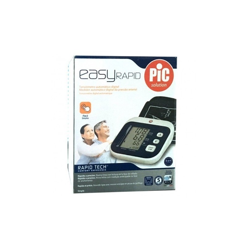 ES UN INTUITIVO TENSIÓMETRO AUTOMÁTICO DIGITAL DE BRAZO. DE INNOVADORAS FORMAS GRACIAS AL DISEÑO DLS, INCORPORA LA TECNOLOGÍA DE ÚLTIMA GENERACIÓN RAPID TECH - COMFORT EXPERIENCE QUE REALIZA UNA MEDICIÓN ANTICIPADA DESDE LA FASE DE INFLADO.RAPID TECH - COMFORT EXPERIENCE CON MEDICIÓN EN LA FASE DE INFLADO, TE OFRECE UN RESULTADO RÁPIDO Y CONFORTABLE.PERO ADEMÁS, EASY RAPID ES SENCILLO E INTUITIVO: TODA LA TECNOLOGÍA PIC EN TRES BOTONES PARA QUE AFRONTES CON TRANQUILIDAD EL MOMENTO DE TOMARTE LA TENSIÓN. ADEMÁS DE VELOCIDAD Y SENCILLEZ, EASY RAPID POSEE ALGUNAS PECULIARIDADES ÚTILES PARA CADA TIPO DE USO. UN ÚNICO BOTÓN PERMITE INICIAR Y TERMINAR AUTOMÁTICAMENTE TODAS LAS MEDICIONES DE MANERA RÁPIDA.UN SENSOR DE LATIDOS ADVIERTE DE POSIBLES IRREGULARIDADES EN EL RITMO CARDÍACO. Y, POR ÚLTIMO, UN INDICADOR GRÁFICO TE INFORMA EN TIEMPO REAL DEL NIVEL DE TENSIÓN.EASY RAPID TAMBIÉN CALCULA AUTOMÁTICAMENTE LA MEDIA DE LAS 3 ÚLTIMAS MEDICIONES Y MEMORIZA LOS RESULTADOS DE LOS 60 ÚLTIMOS CONTROLES, PARA QUE PUEDAS CREAR UN PRÁCTICO DIARIO CLÍNICO. EASY RAPID Y SU CÓMODO Y SUAVE BRAZALETE SE GUARDAN EN UNA PRÁCTICA BOLSA IDEAL PARA EL TRANSPORTE.ESTE PRODUCTO TIENE 5 AÑOS DE GARANTÍA.