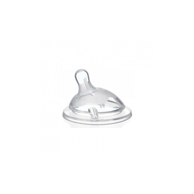 TETINA FLUJO MEDIO PARA BEBÉS A PARTIR DE 2 MESES. DISEÑO INCLINADO ESPECÍFICO PARA RECIÉN NACIDOS. ANILLOS EN RELIEVE IMITAN SENO MATERNO, MAYOR ELASTICIDAD. DOBLE VÁLVULA ANTICÓLICOS, SUAVE SILICONA.